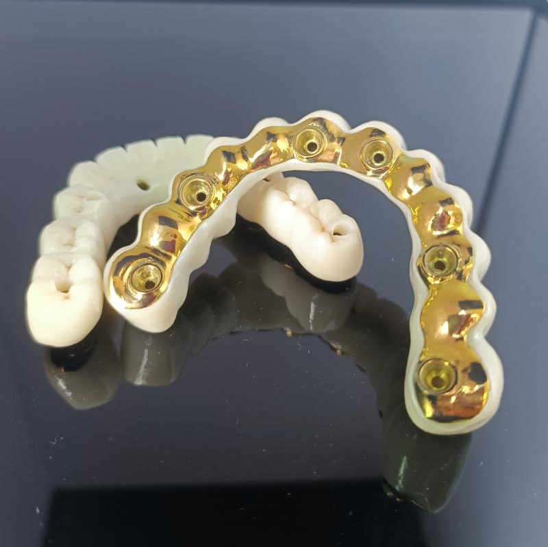 WM চায়না ডেন্টাল ল্যাব সম্পূর্ণ আর্চ পুনরুদ্ধার CADCAM টাইটানিয়াম ইবার লোকেটার সহ স্থাপন করা হয়েছে এবং দাঁতের উপর অপসারণযোগ্য